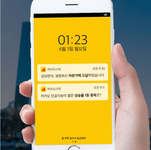 실시간으로 카카오톡을 통해 증권 소식을 전달해주고 증권 서비스를 이용할 수 있는 증권 어플의 SNS 광고 영상 제작